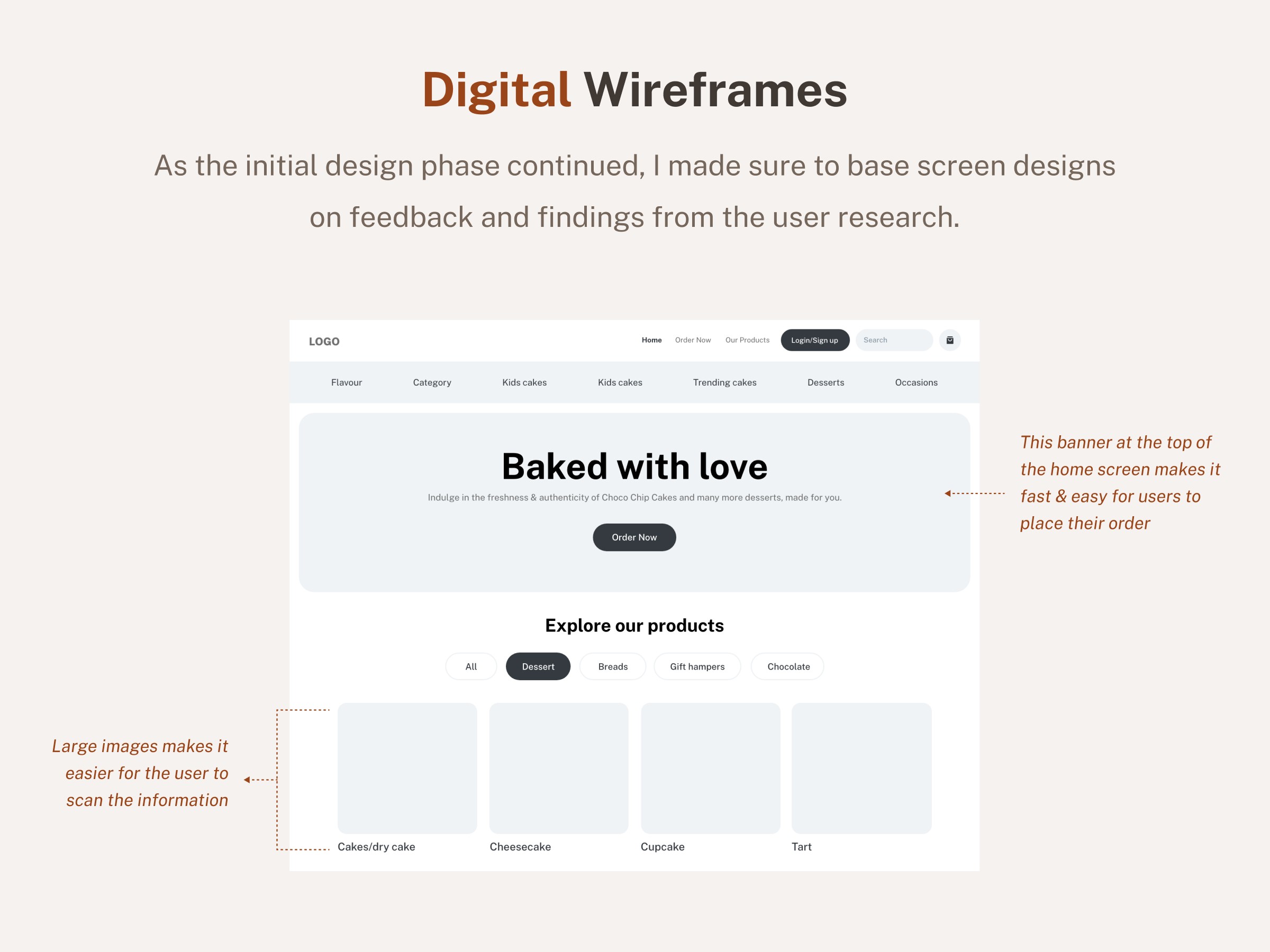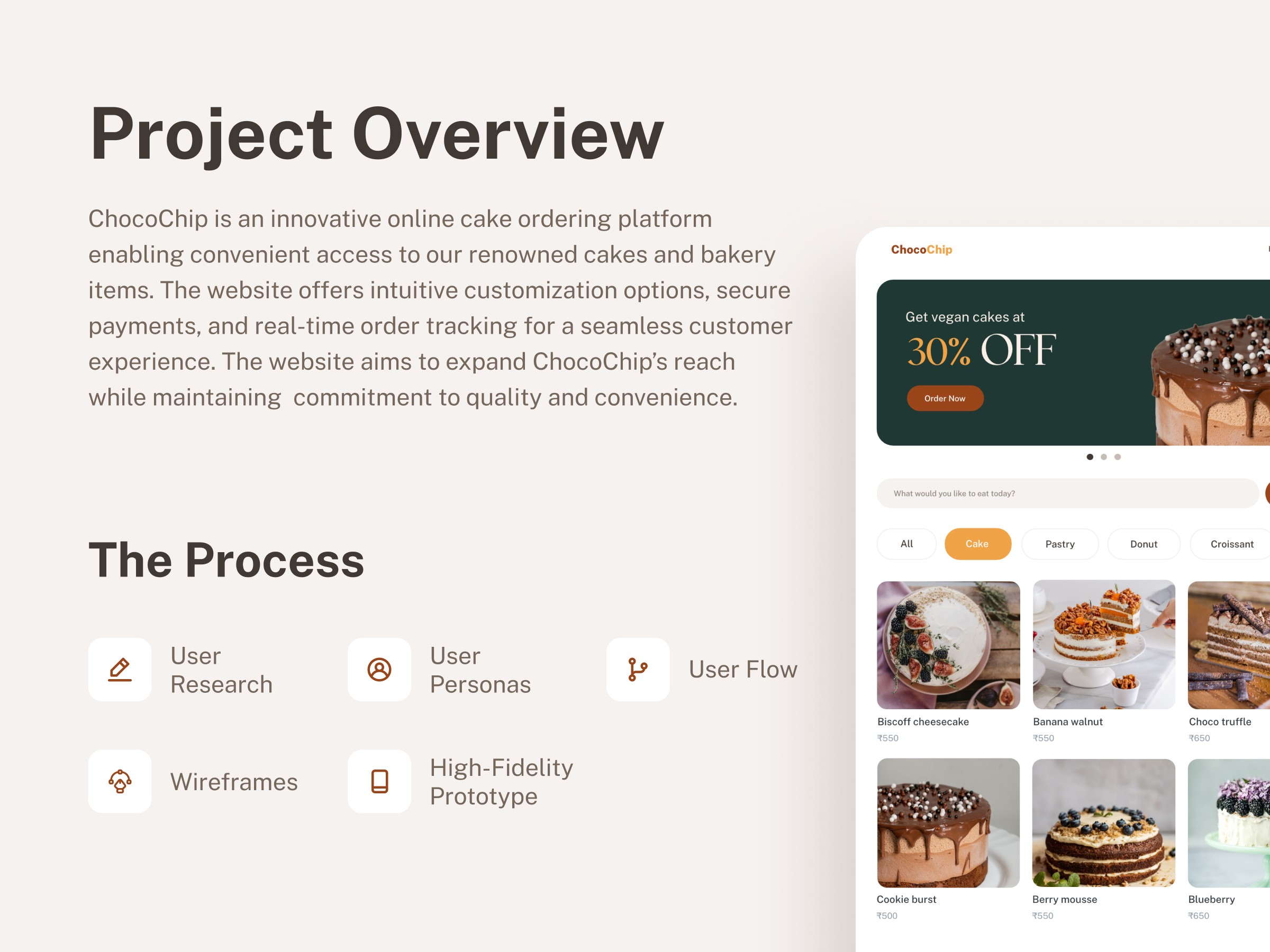 Minimalistic and refined online cake ordering platform enabling convenient access to our renowned cakes and bakery items.